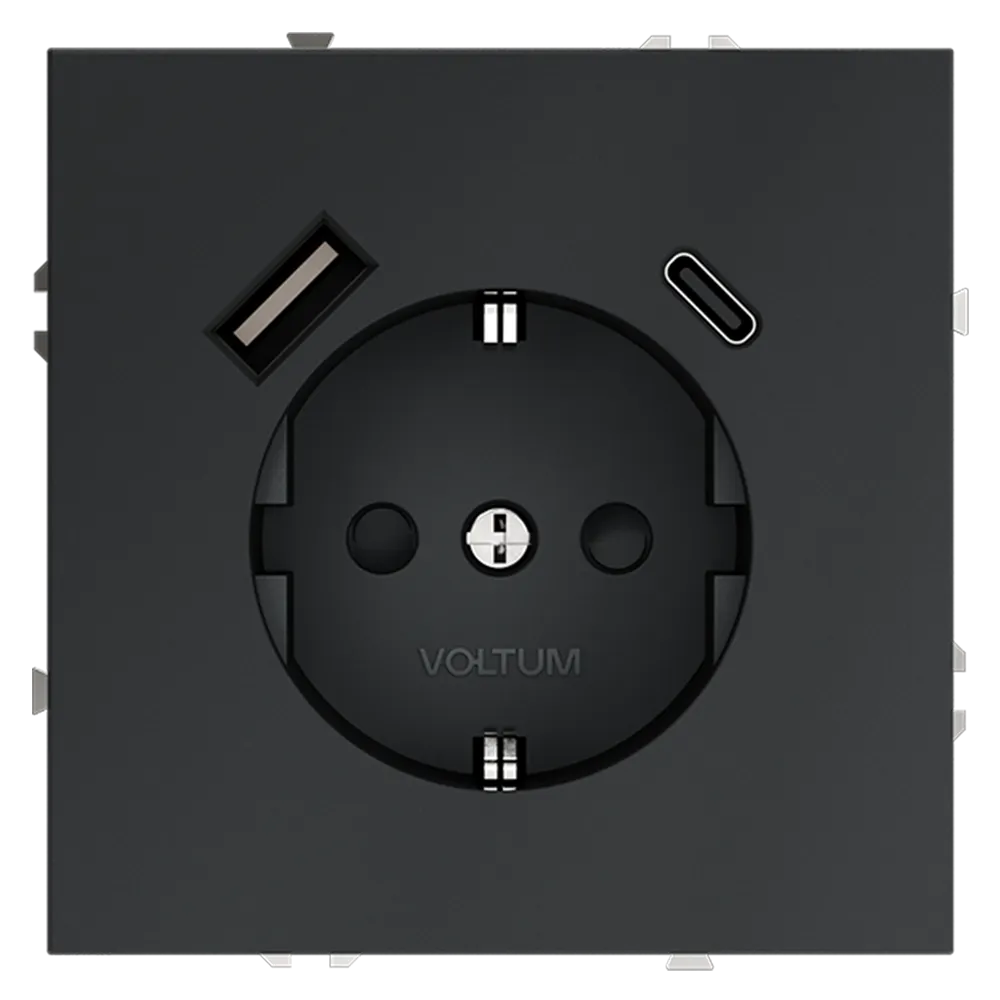 Розетка встраиваемая VOLTUM S70 с заземлением и защитными шторками 16А с USB А+С (графит)