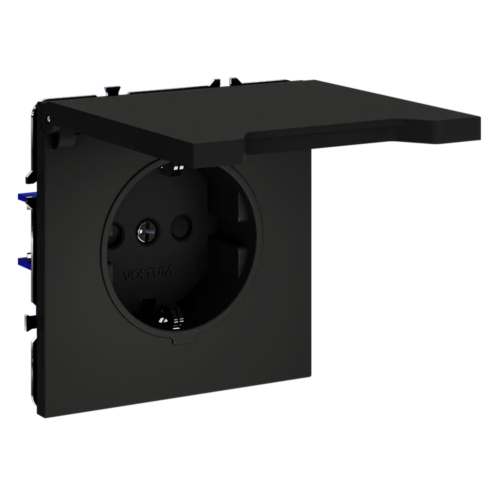 Розетка VOLTUM S70 с заземлением и защитными шторками и откидной крышкой  — это решение максимальной безопасности и эстетики для современного интерьера. Идеально подходит для детских комнат, ванных, прихожих, кухонь и уличных зон под навесом, где важна защита от пыли, брызг и случайного контакта с токоведущими частями.