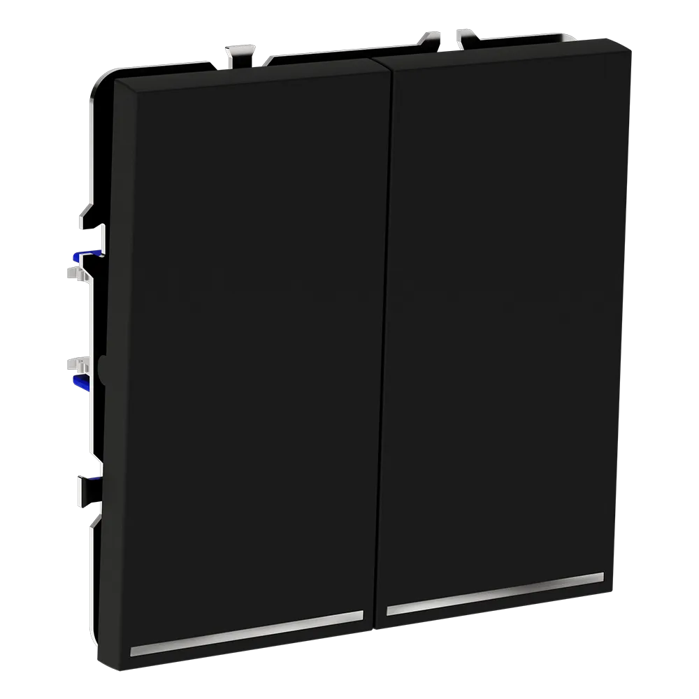 Двухклавишный выключатель VOLTUM S70 с подсветкой в цвете «черный» — это идеальное сочетание функциональности, современного дизайна и удобства использования в темное время суток. Благодаря встроенной светодиодной подсветке, вы легко найдёте выключатель даже при полной темноте, не нарушая атмосферы уюта в спальне, коридоре или детской.