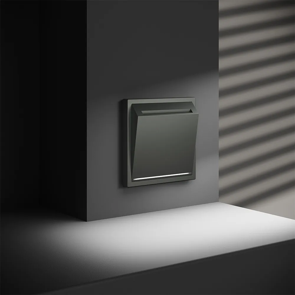 Выключатель встраиваемый VOLTUM S70 одноклавишный с подсветкой 10А (титан)