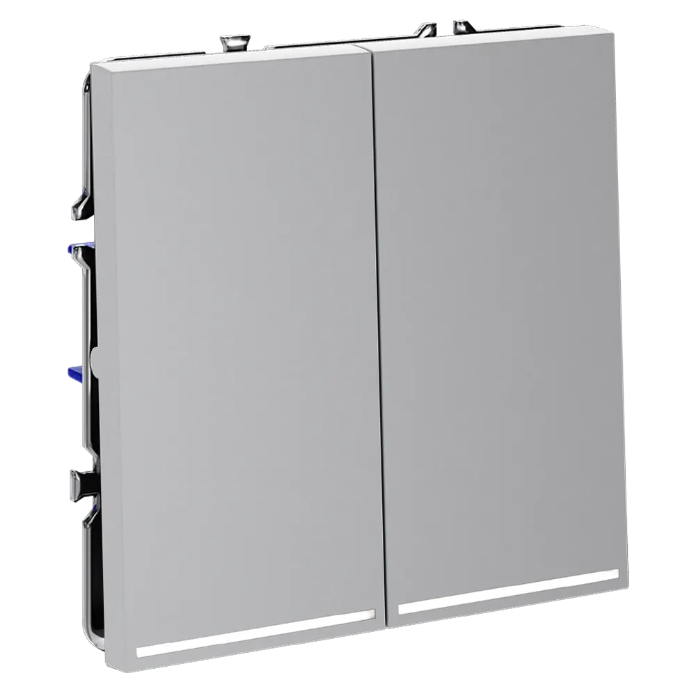 Двухклавишный выключатель VOLTUM S70 с подсветкой в цвете «серый» — это идеальное сочетание функциональности, современного дизайна и удобства использования в темное время суток. Благодаря встроенной светодиодной подсветке, вы легко найдёте выключатель даже при полной темноте, не нарушая атмосферы уюта в спальне, коридоре или детской.